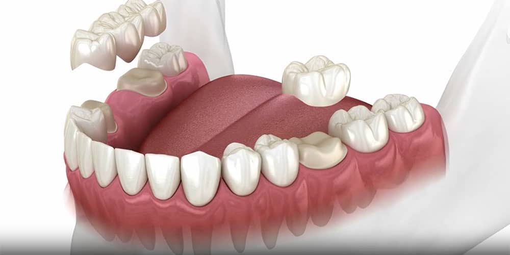Dental crowns restore damaged teeth, while bridges replace missing teeth, improving function, appear...